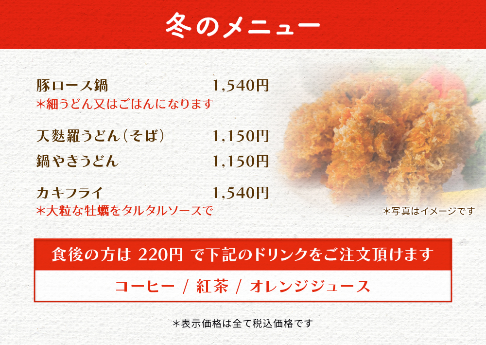 季節の御膳から、洋食まで多彩なメニューをご用意しております。